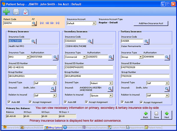one-click access to key information. Users can immediately access insurance files, medical codes,